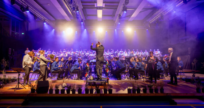 De combinatie van een volledig harmonieorkest met de theatrale energie van de Omniband zorgt voor een bijzondere dynamiek op het podium, waarbij samenspel en contrast elkaar versterken.